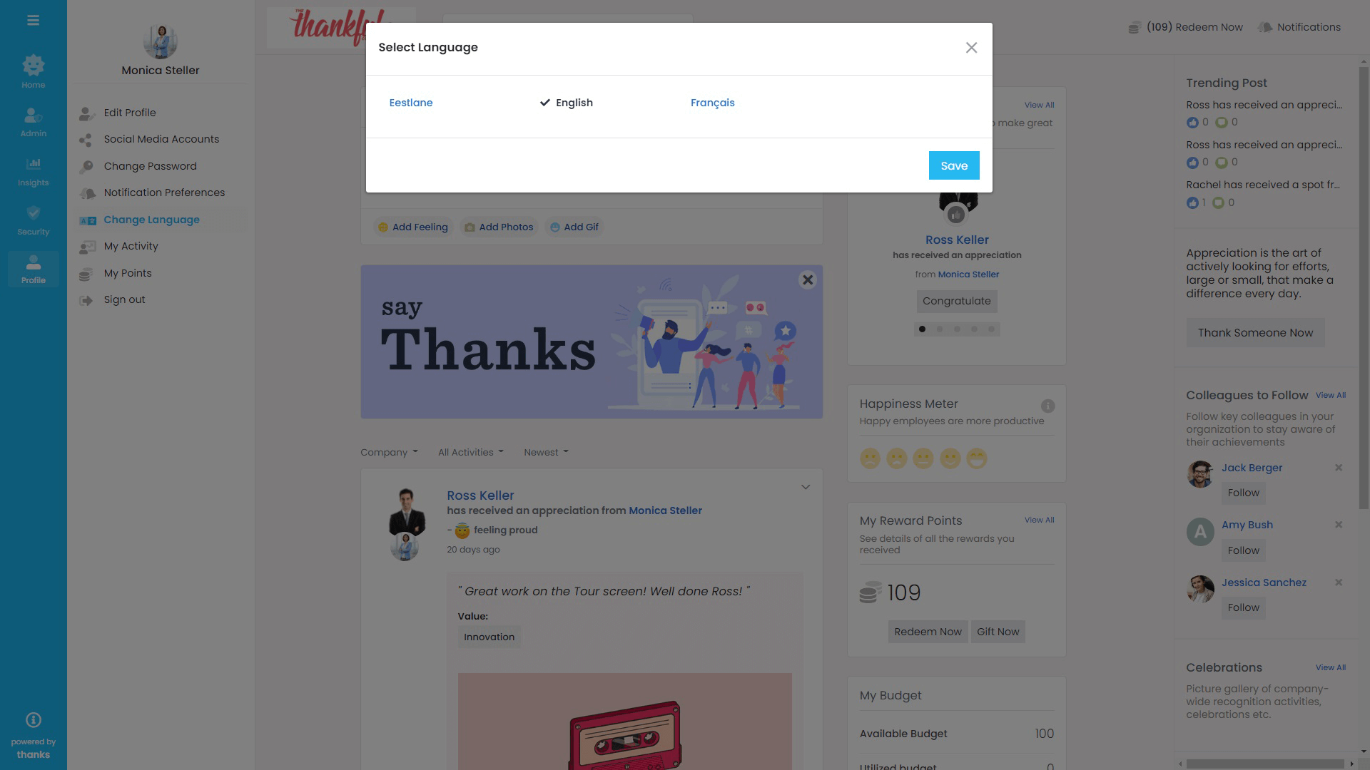 - Select Translateoption. This will translate all the platform verbiage into your language.