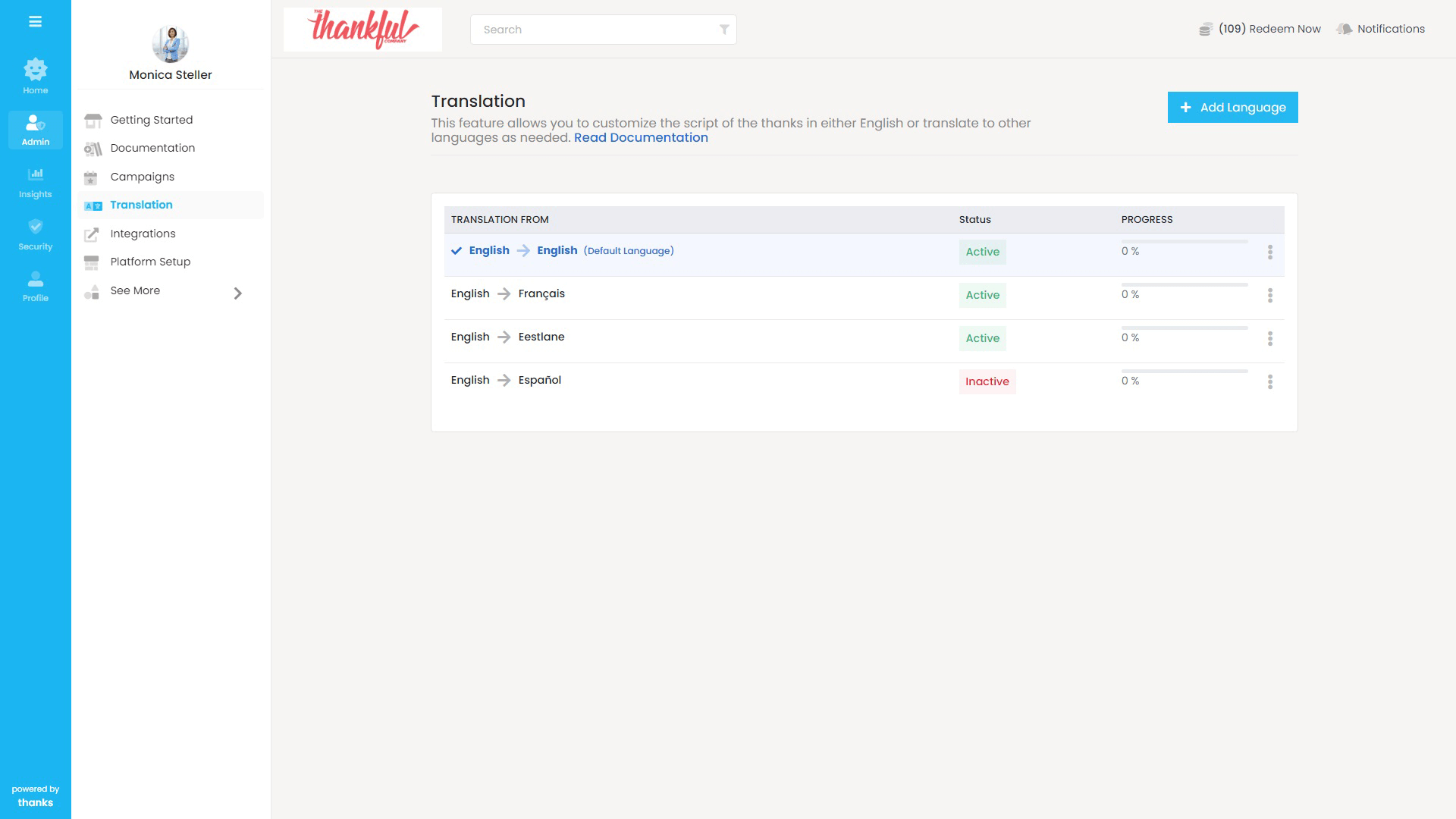 Translation module allows the administrator to use the platform in multiple languages. To add a language: