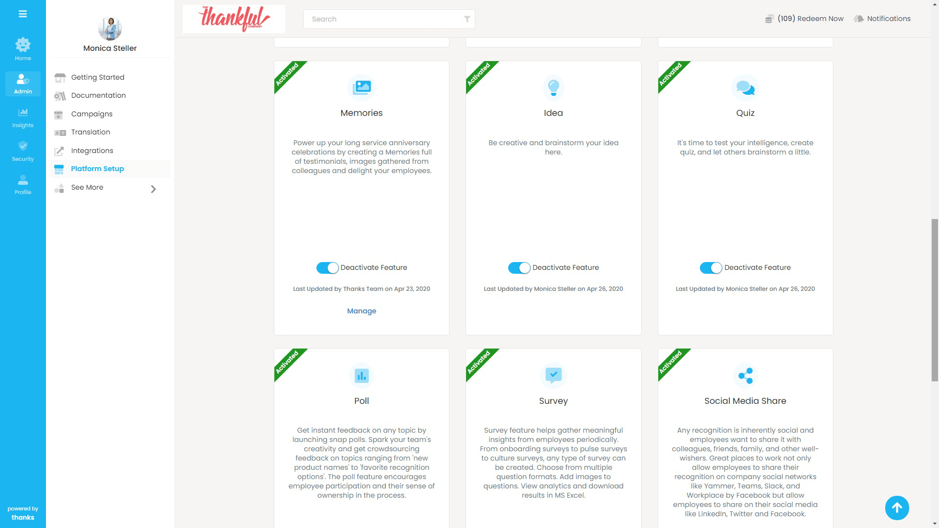 - On the right side of the page, click Admin > Platform Setup > Configure Features.