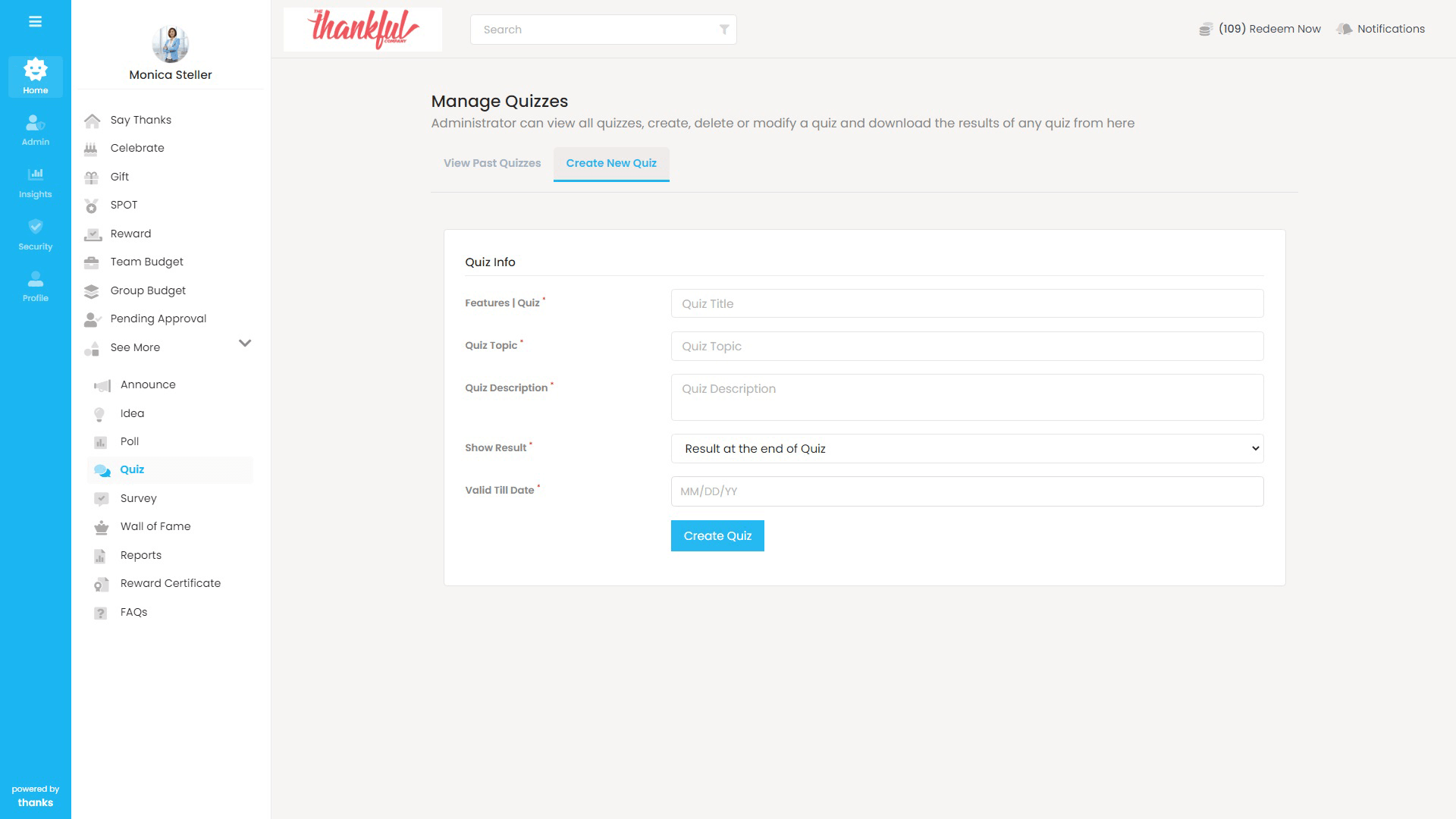 This page shows the Administrator how to setup the Quiz feature on the Thanks platform.