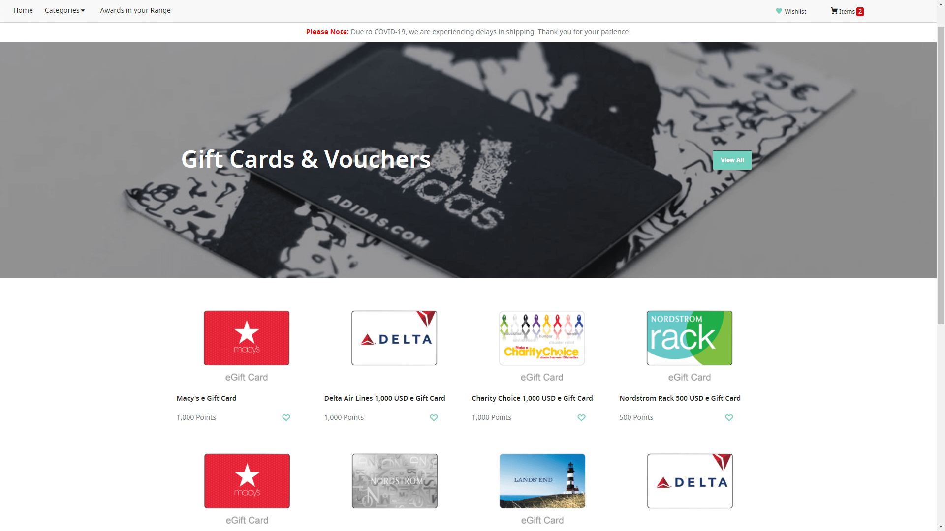 Thanks Store provides a wide range of electronic gift cards across various categories like Health and Beauty, Home Goods, and Gift Vouchers. The user will be able to access the catalog applicable to their current geographical location based on the data shared by the administrator.