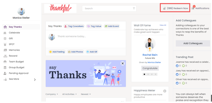 A user can redeem their reward points either on the Company Store or Thanks Store. We will talk about Thanks Redemption Store in this section.