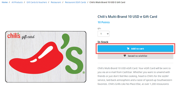 Note: Your balance reward points will be automatically adjusted against the value of the gift card.
