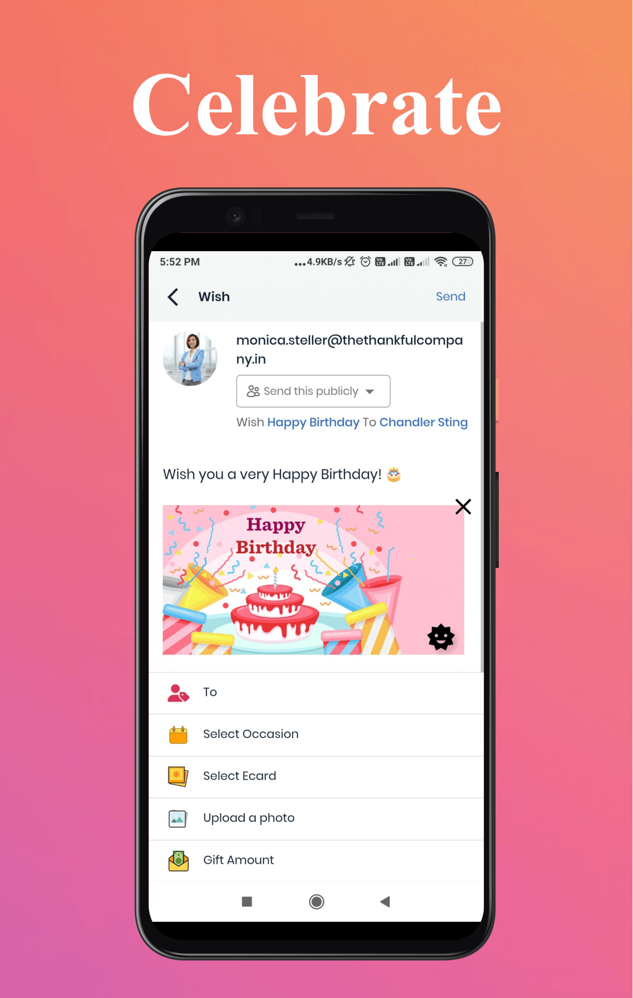 Many companies have manufacturing employees that don’t have access to emails. But only have access to mobile phones or kiosk. Empower these employees by encouraging to send and receive recognition on their mobile phones.